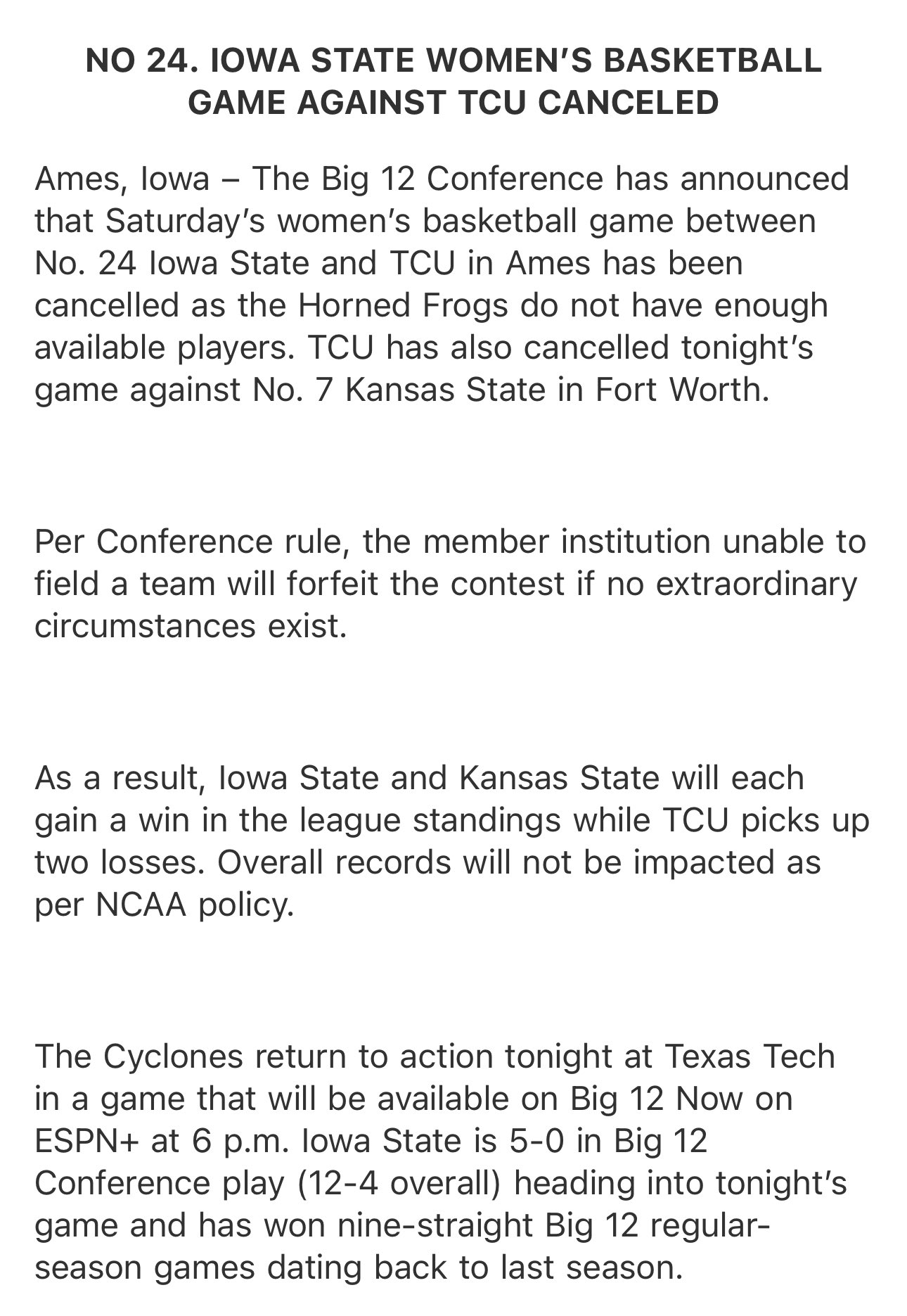 Chris Williams on X: “Wild. Iowa State women get a forfeit win